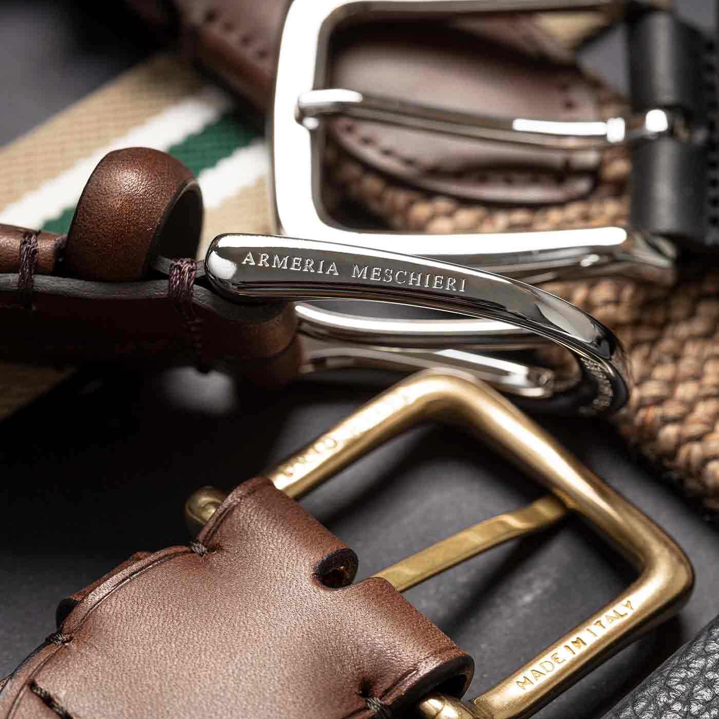 All our buckles are solid brass, the best material to use combined with a belt. The brass is then treated with our special palladium finishing. This expensive process guarantees long-lasting durability and protection from oxidation over time.