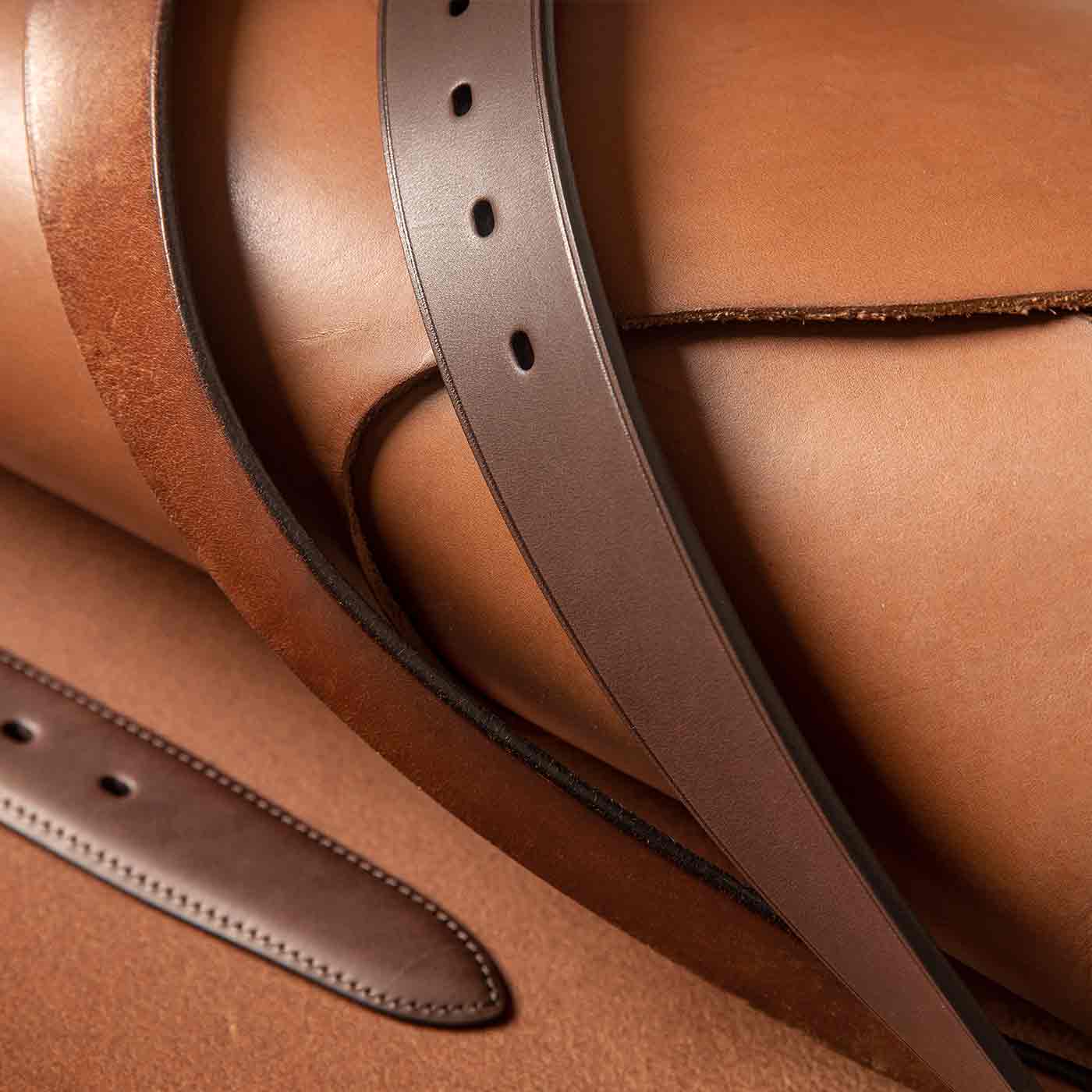 We use vegetable-tanned bull leather in many belts, which is an entirely natural and non-polluting tanning process. In addition to this environmental, ethical choice, we offer our customers one of the best quality leathers available.
